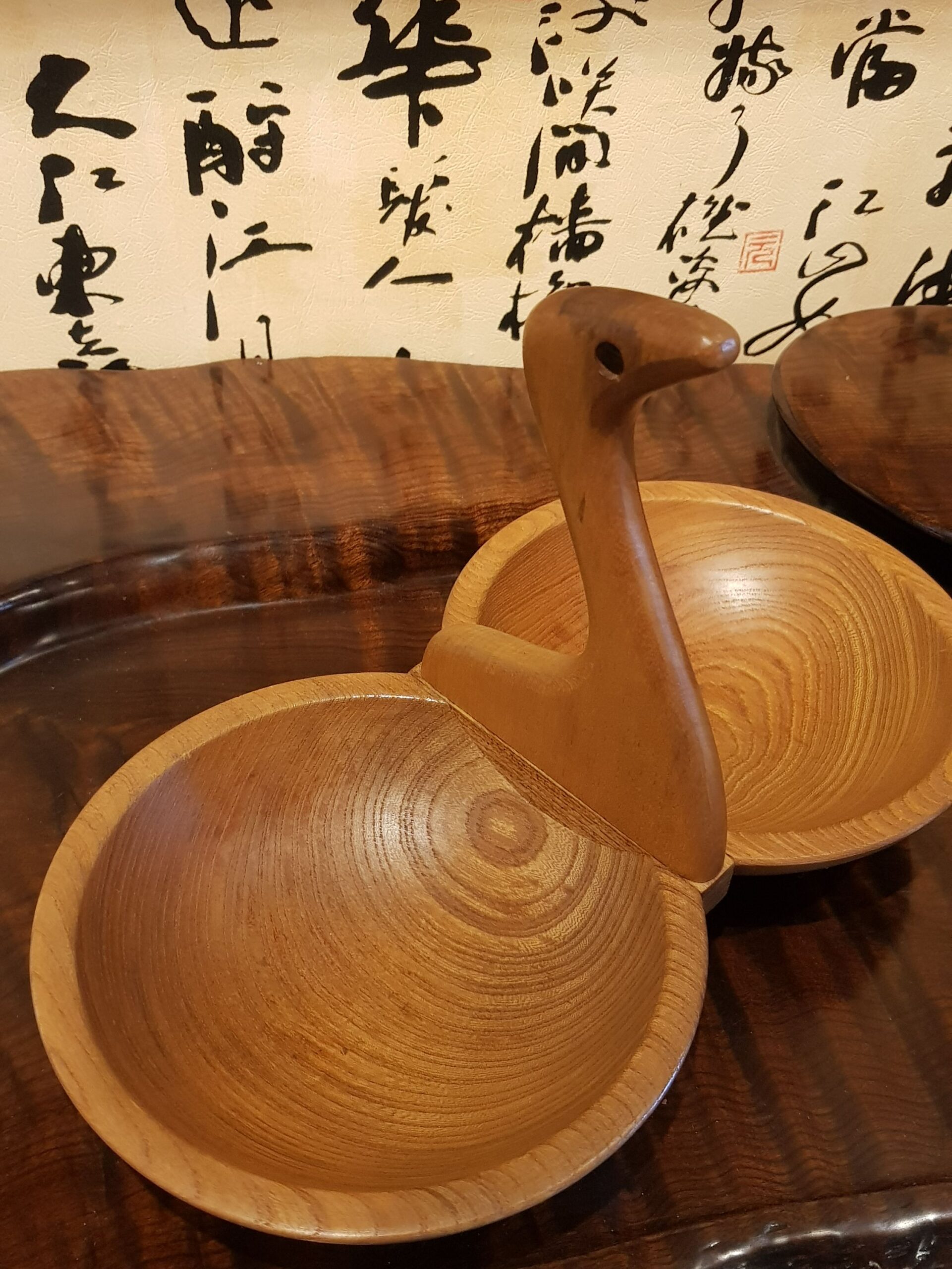 原木天鵝造型提手雙盤 收納盤