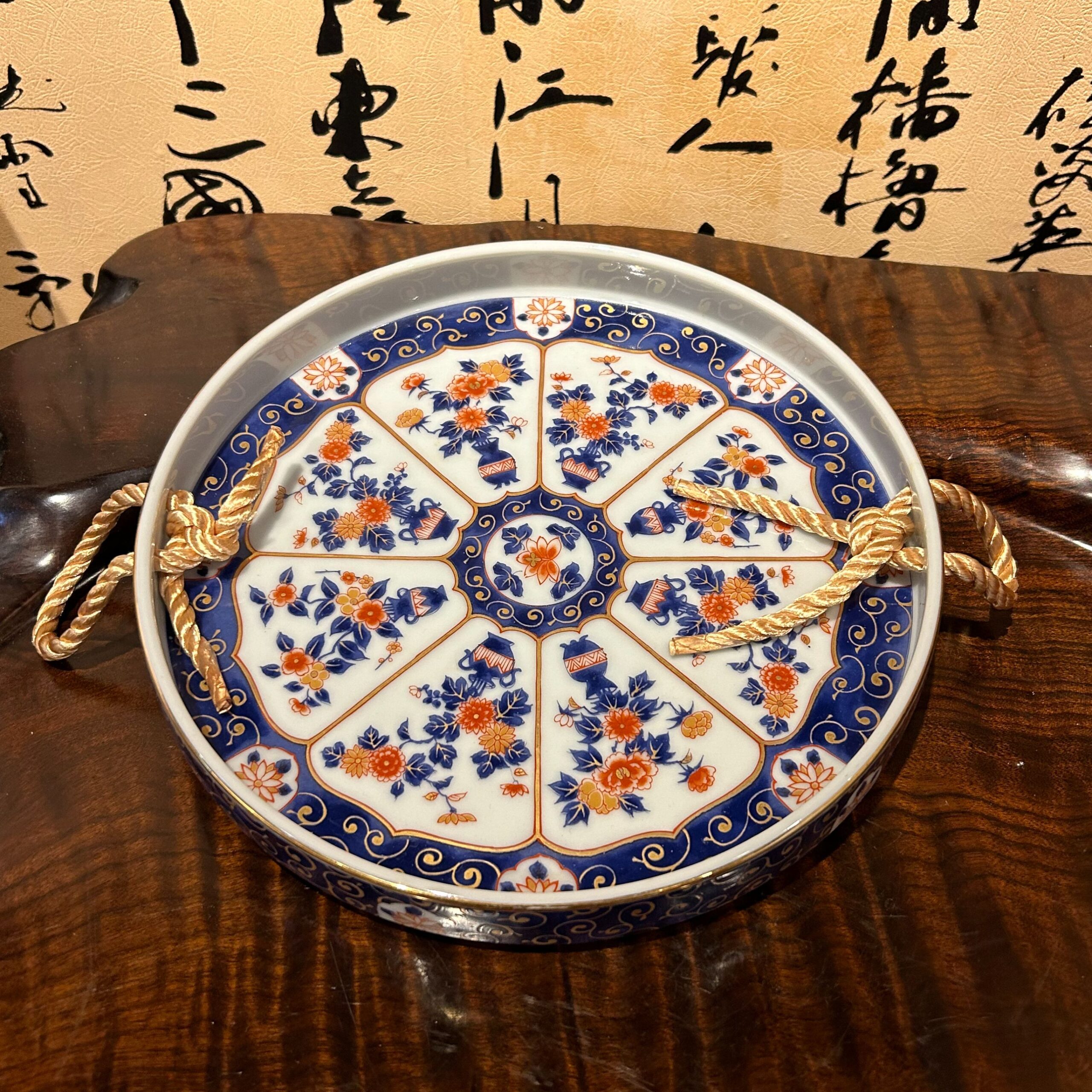 古風花紋水果盤-編織提手